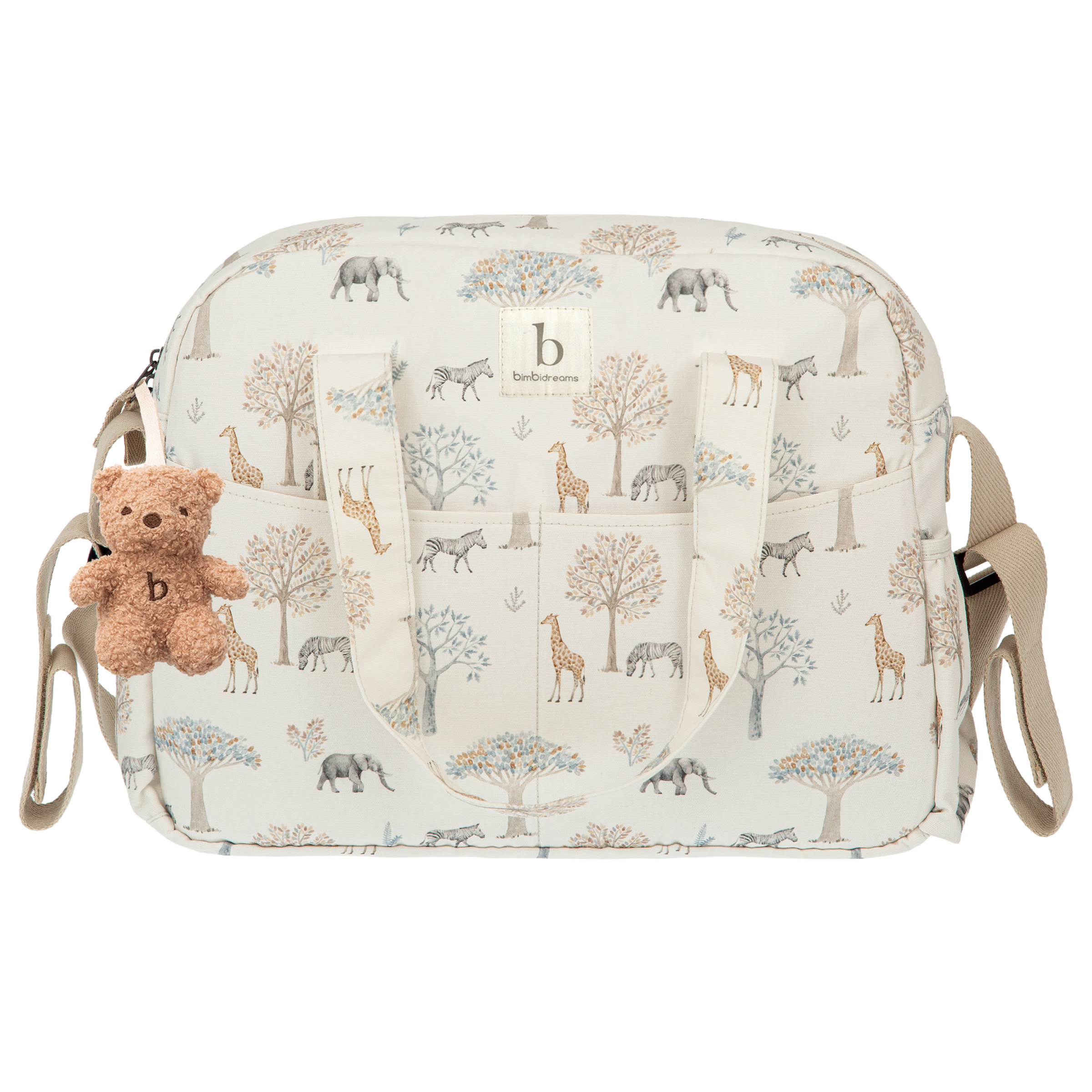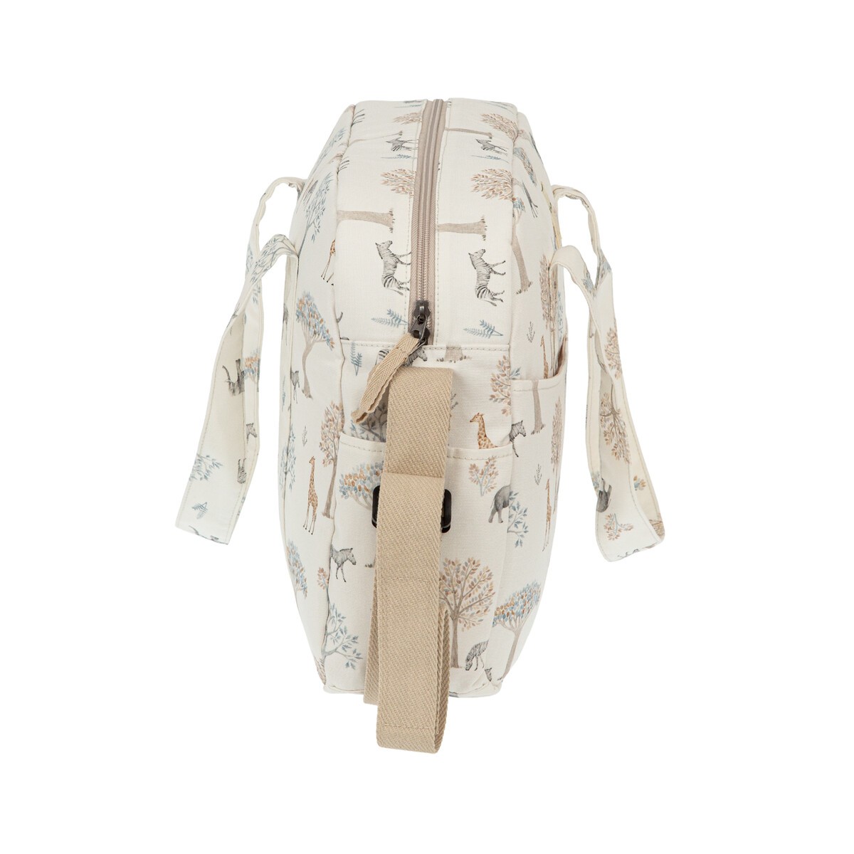 - Dispone de asa larga y 2 asas cortas para colgar del manillar del cochecito