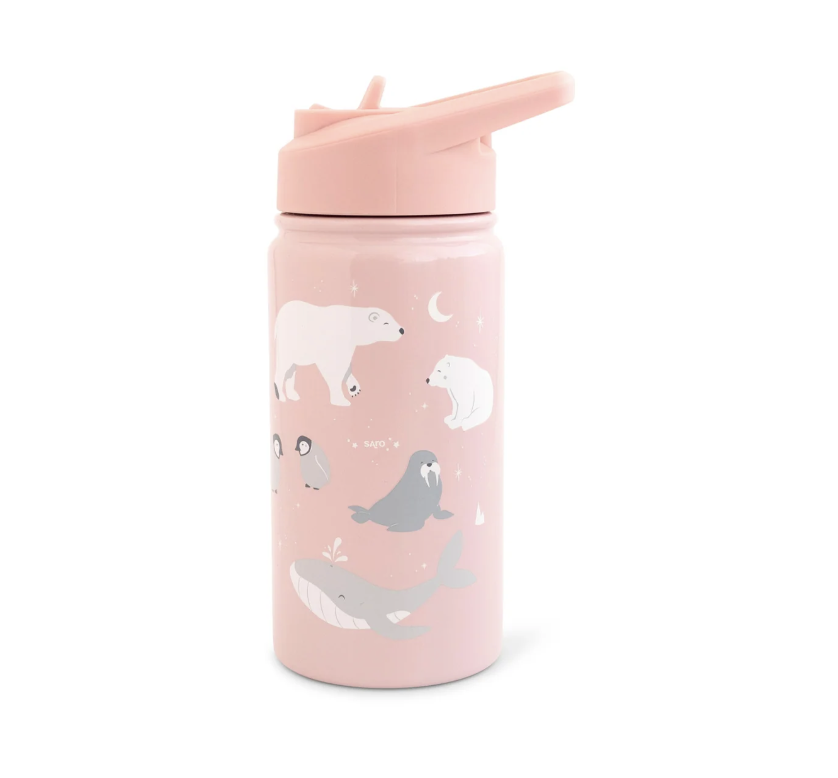 Botella termica infantil con pajita Saro Antártida rosa