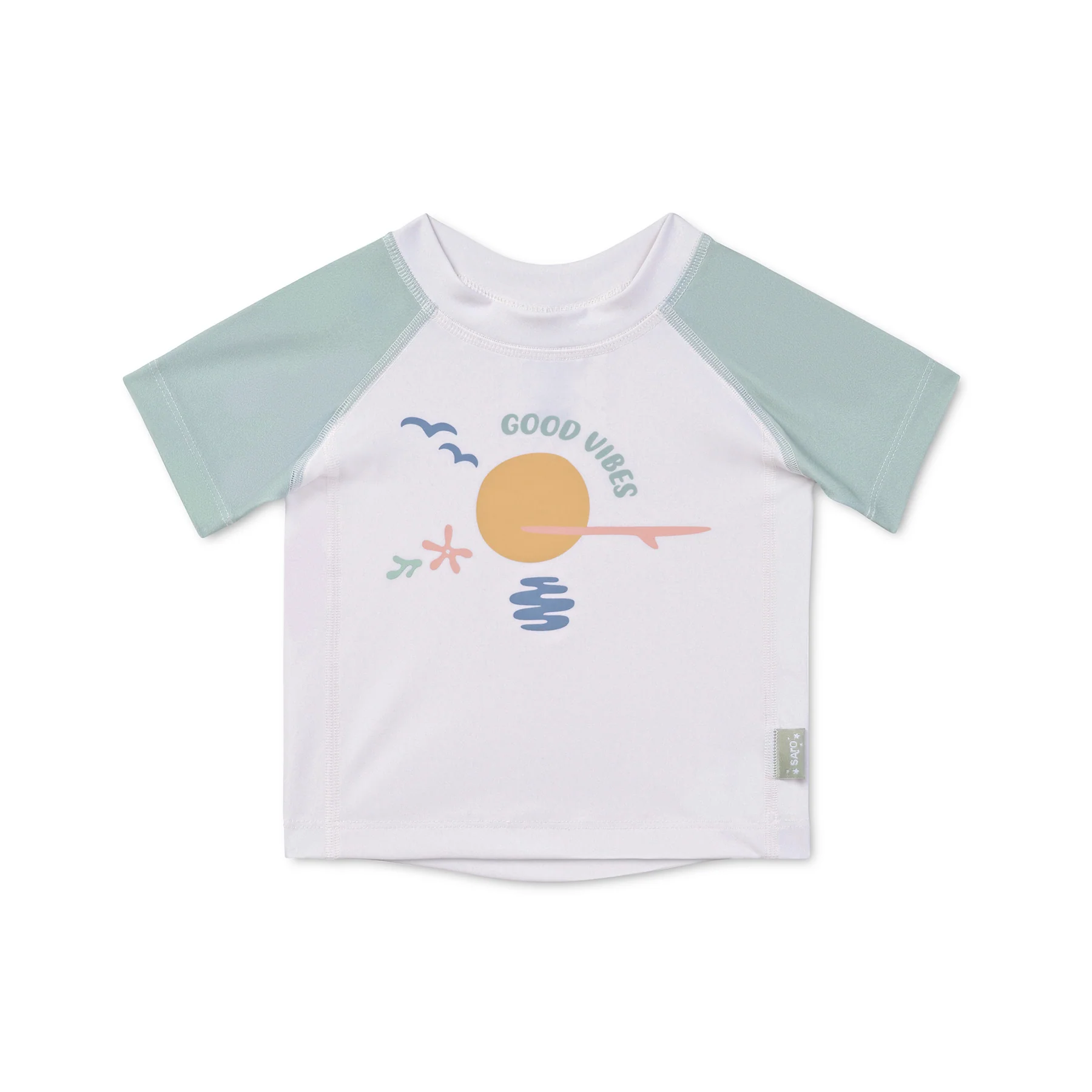 Esta camiseta con protección solar UV UPF 50+ protegerá a tu peque durante los días de sol en la playa y la piscina. Su tejido es muy suave y flexible, súper respetuoso con la piel sensible de tu bebé. Además tiene un alto nivel de resistencia al cloro, ¡perfecta para utilizarla en la piscina!
