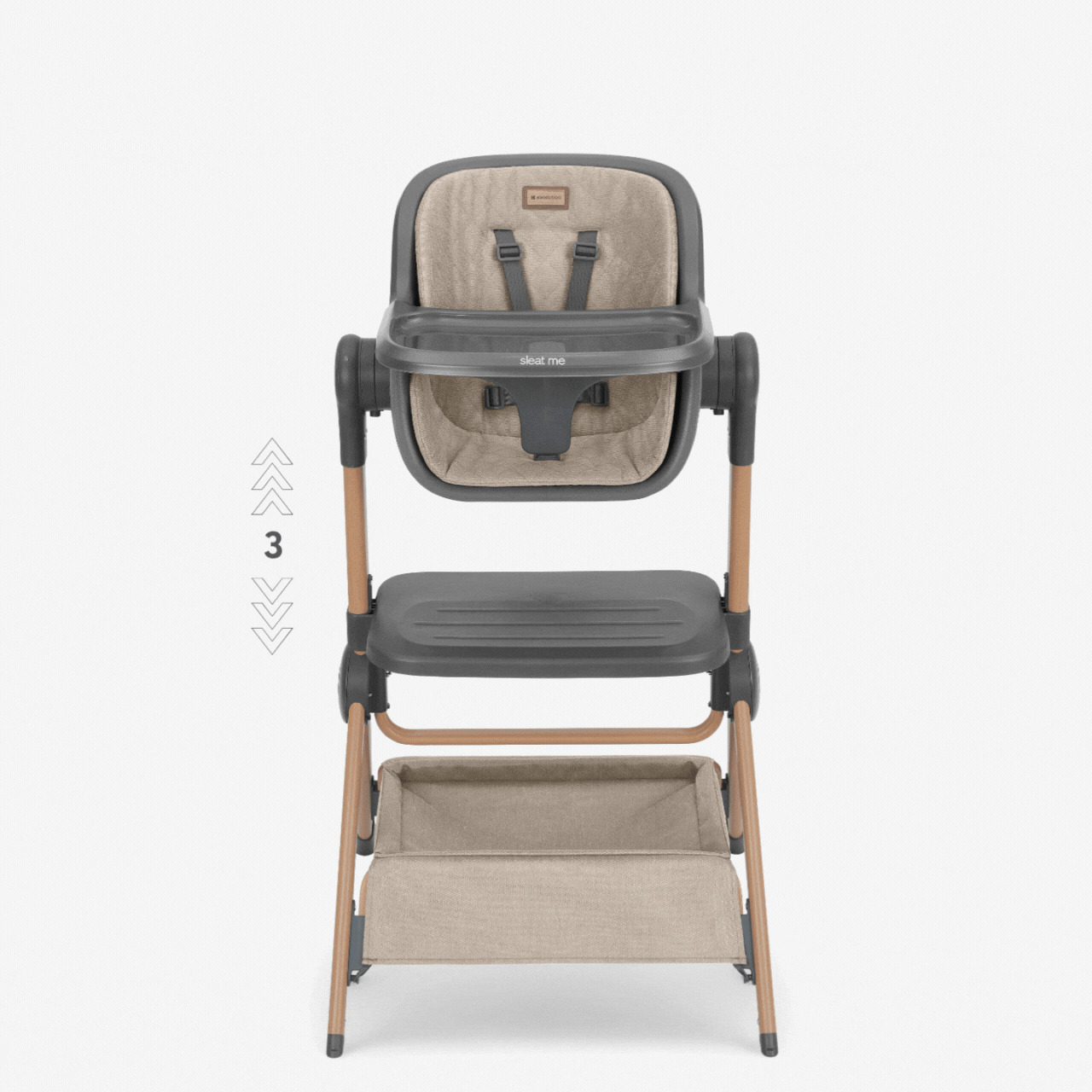 - Lista para las comidas – La trona incorpora asiento acolchado, sistema de arnés de 5 puntos, ajuste de altura en 3 posiciones, bandeja regulable en 2 posiciones y una cesta inferior para accesorios del bebé.