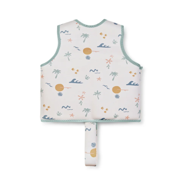 Confeccionado en neopreno reciclado, es de tacto suave y muy agradable. Sus costuras son suaves y blanditas, y sus sisas amplias, favoreciendo el movimiento natural y libre de los brazos de tu peque, haciéndolo muy cómodo de llevar y evitando molestas rozaduras.