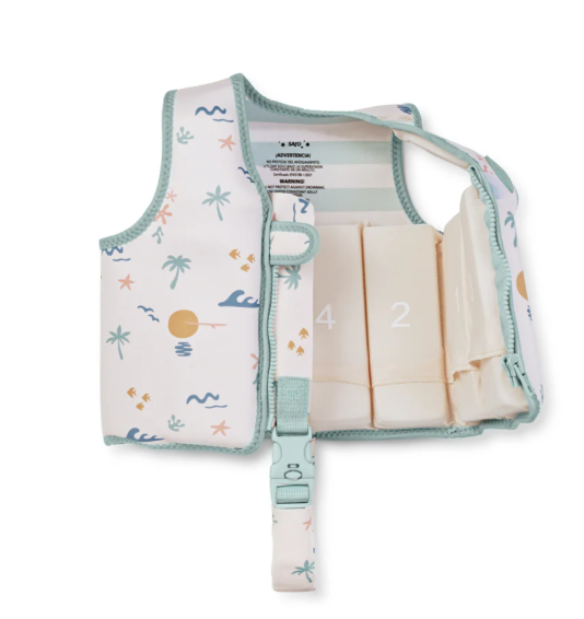 ¡Al agua patos! El chaleco flotador de Saro es el complemento perfecto para aprender a nadar de manera cómoda y segura.