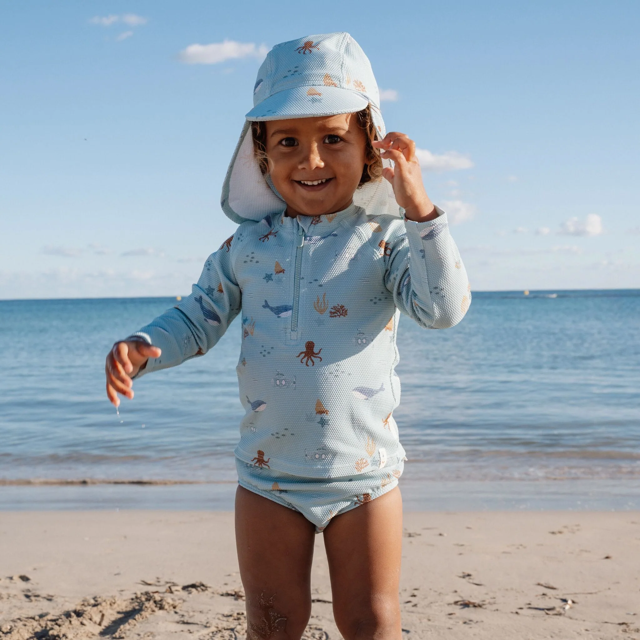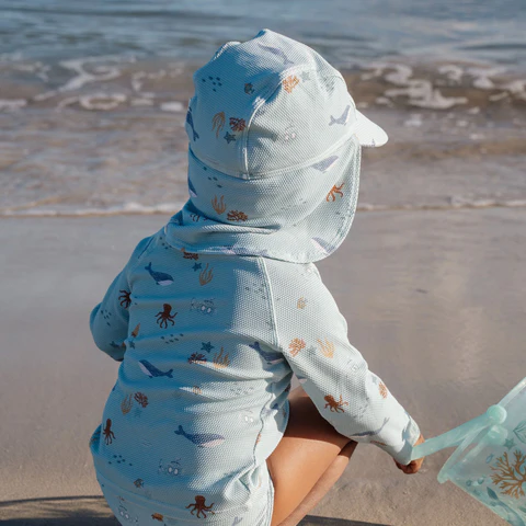 Es una excelente opción para los días soleados. Gracias a su cuello fijo, protege el cuello de los rayos solares intensos, ideal para horas de juego en la playa o la piscina. El gorro es ligero, cómodo y se mantiene en su lugar incluso durante los momentos de juego más intensos. Combina este gorro con una camiseta o bañador a juego con el mismo estampado para un conjunto completo con la mejor protección solar. Con este gorro, estarás listo para un verano lleno de aventuras juntos.