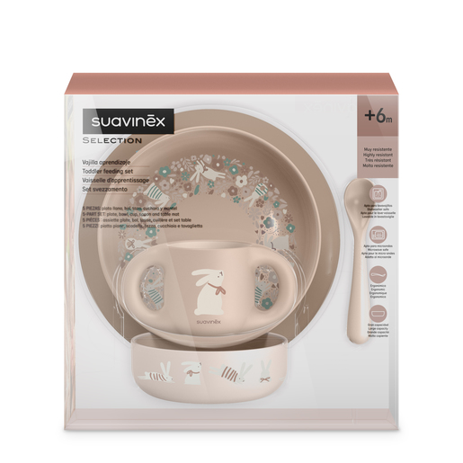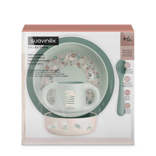Vajilla aprendizaje pensada para facilitar la alimentación del bebé. ¡Muy resistente!