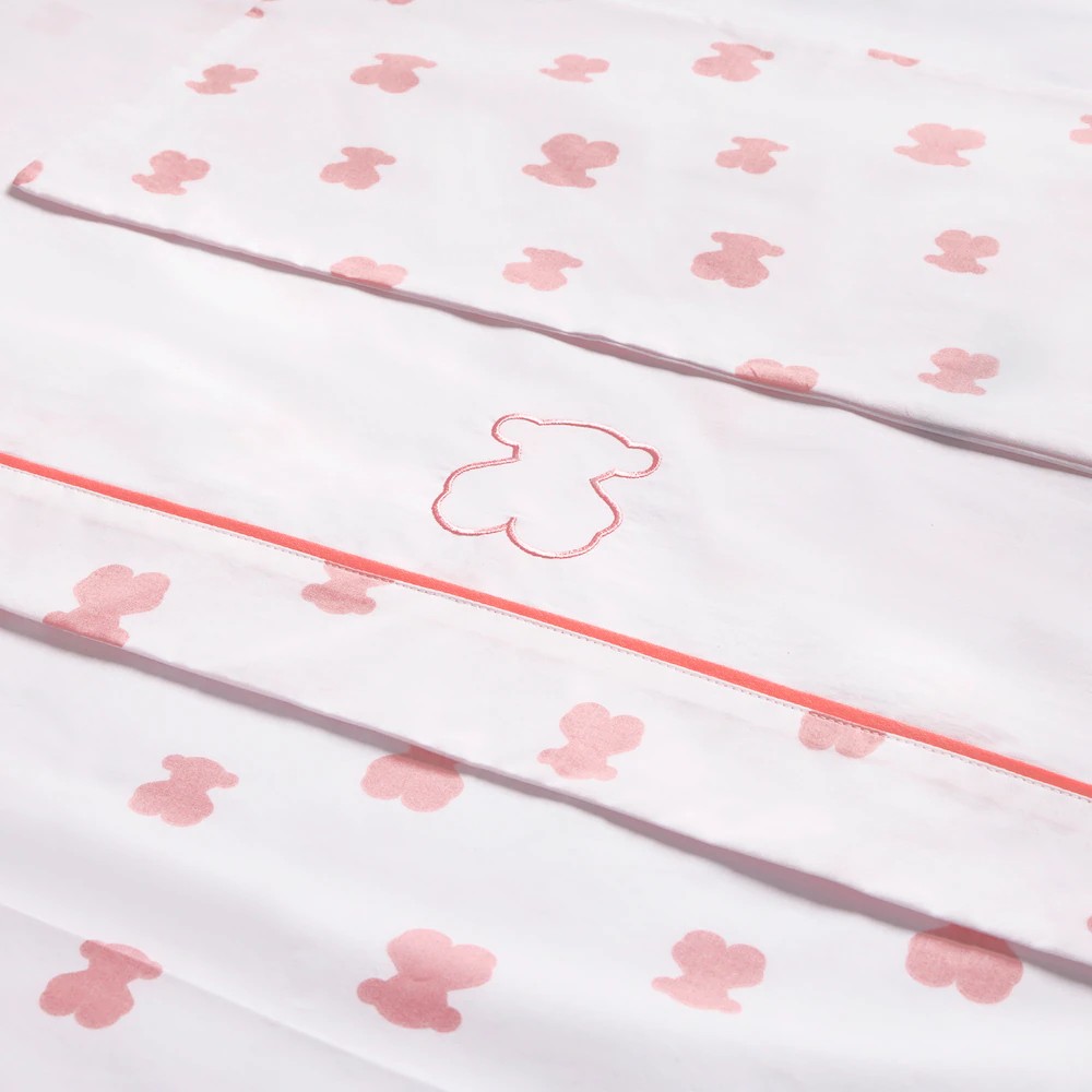 Juego de sábanas Tous Baby para cuna que incluye una funda de cojín y una sábana encimera y sábana bajera, confeccionado en algodón liso y estampado con multi osos. Composición: 100% Algodón. Medidas: Funda cojín: 30×50 cm. Sábana encimera: 100×150 cm. Sábana bajera: 60×120 cm.  Fabricado en la UE. Etiquetado GREENABLE: Certificado OEKO-TEX*. Los tejidos OEKO TEX* Standard 100 certifican que se ha realizado un control en todas las etapas de fabricación: materias primas, fibras y tintes. De esta manera, aseguran no contener materiales nocivos para la salud ni para el medioambiente. Detalles: Lavar antes de usar, lavar con colores similares, no secar en secadora, lavar 30º.