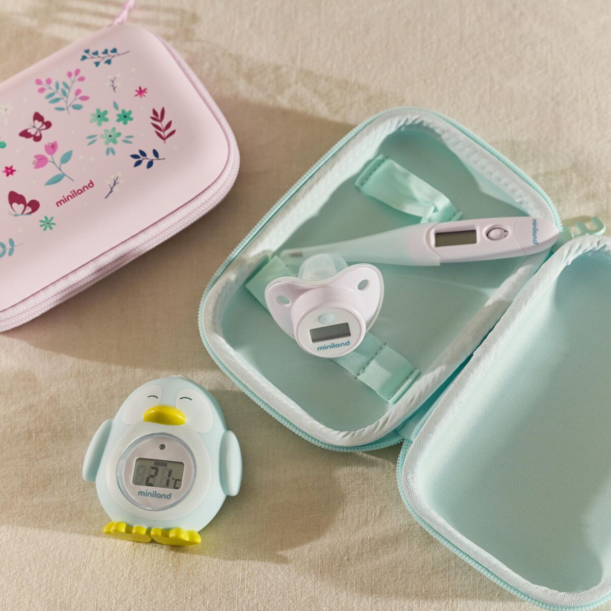 Es el kit de termómetros digitales que te acompaña en todas las situaciones del día a día con tu bebé. Incluye tres termómetros diferentes para controlar la temperatura corporal, el baño y el ambiente, de forma fácil, rápida y cómoda. Un imprescindible para cuidar de tu peque con total tranquilidad.
