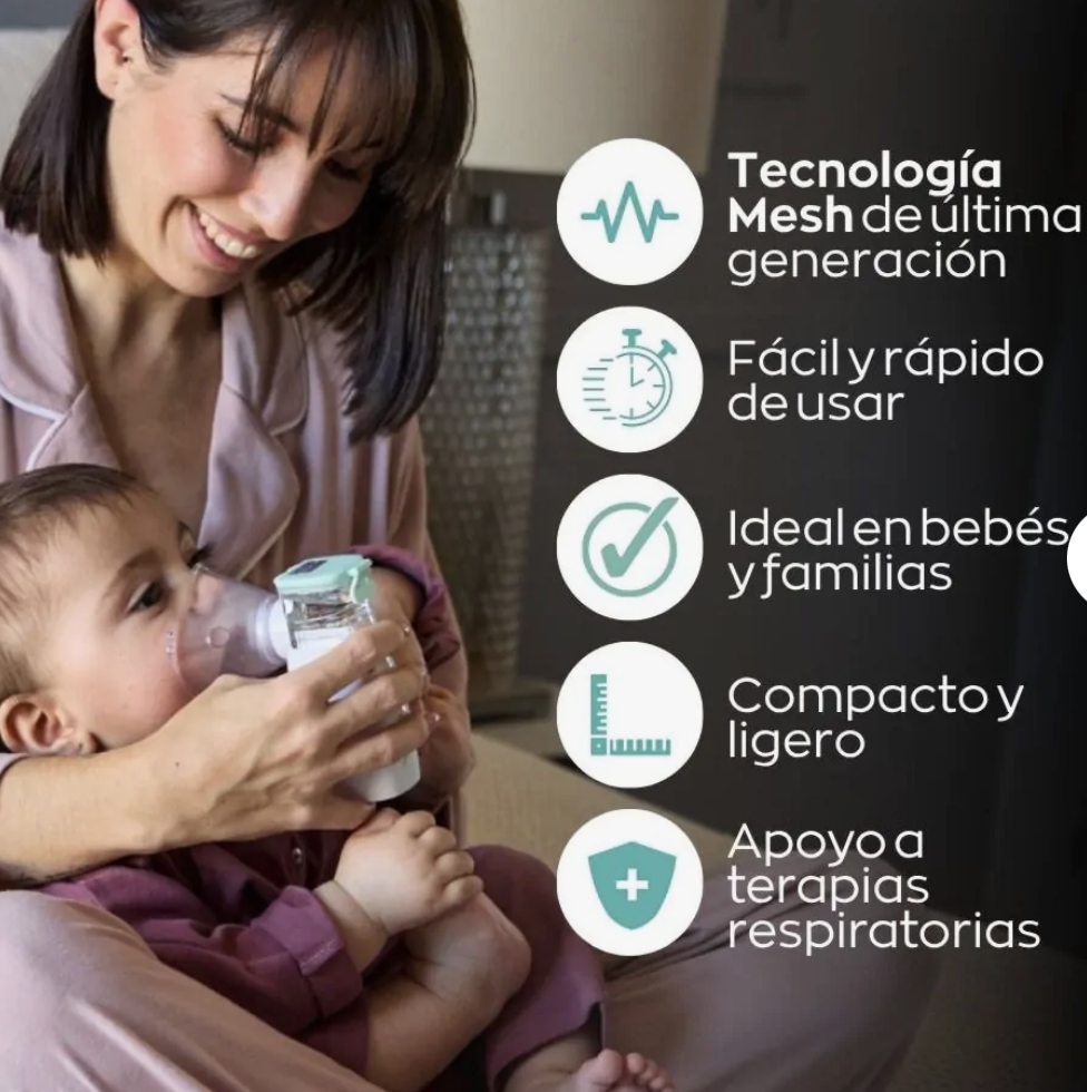 Alivia y cuida las vías respiratorias de toda la familia con Nebuclean, el nebulizador portátil con tecnología de membrana oscilante. Compacto, eficaz y fácil de usar, permite inhalar medicamento o suero fisiológico para un tratamiento rápido y cómodo. ¡Puede usarlo toda la familia, gracias a sus diferentes mascarillas! Con batería recargable, máscara para niños y adultos, y bolsa de transporte, es el compañero ideal para cuidarse en casa y de viaje.