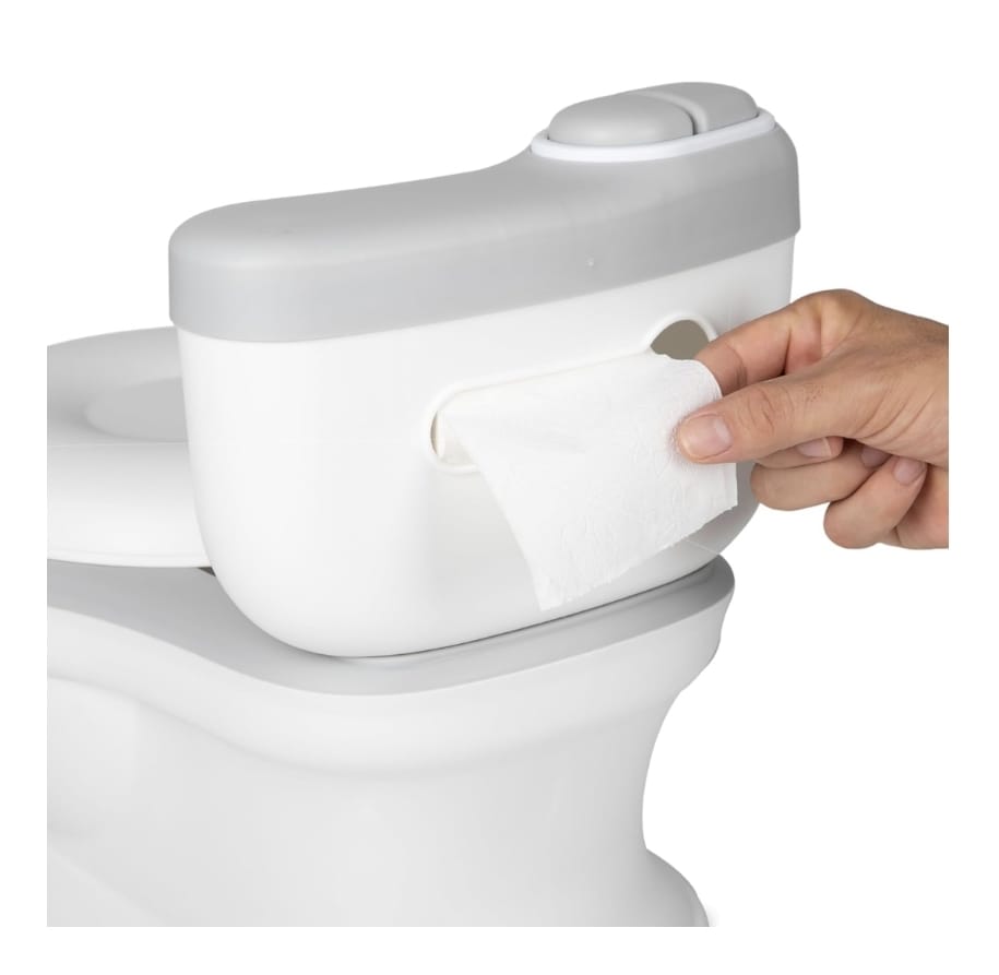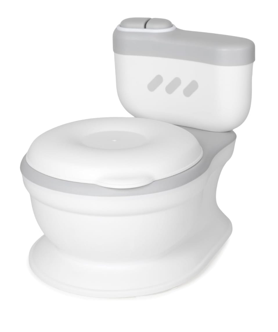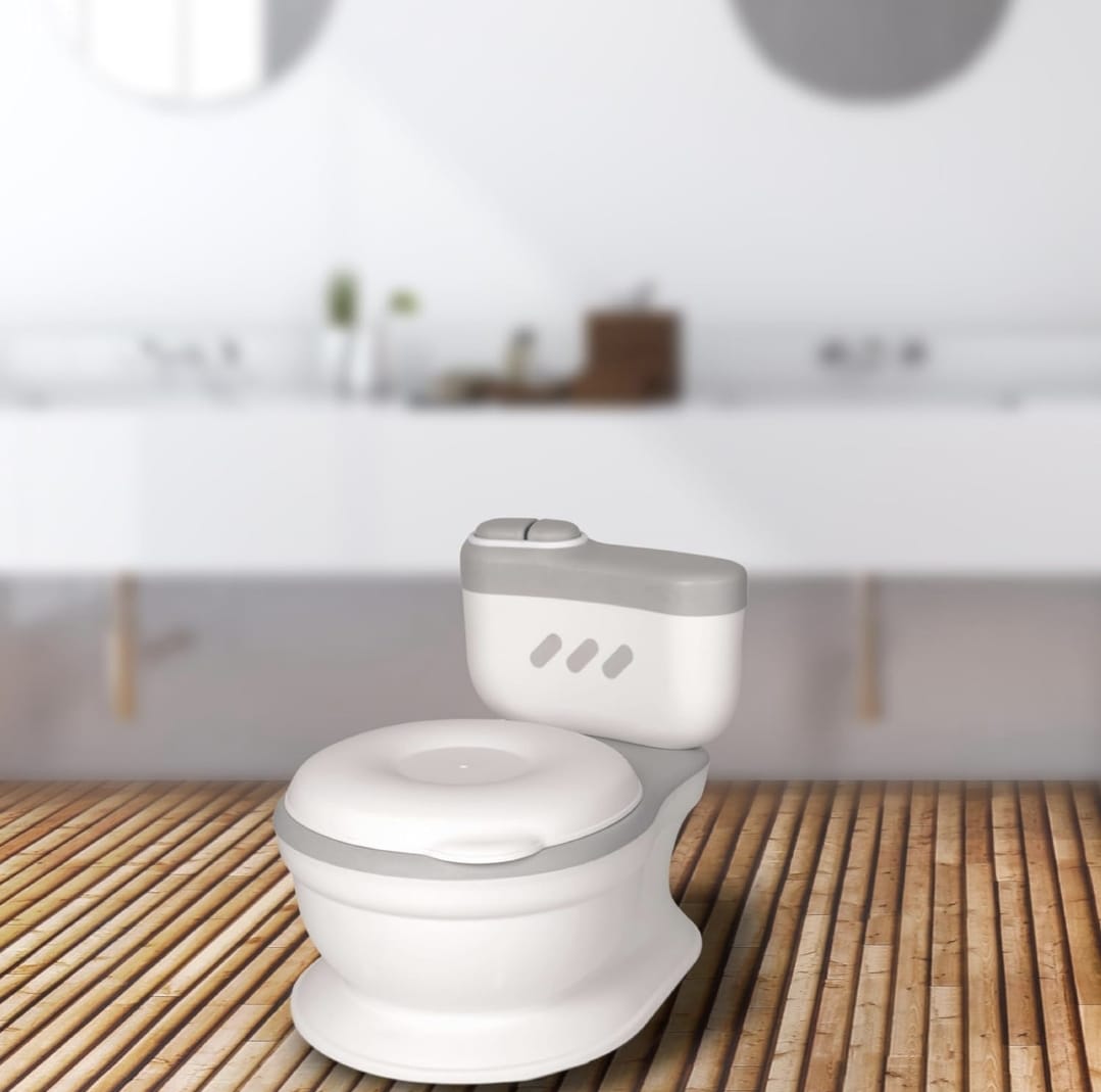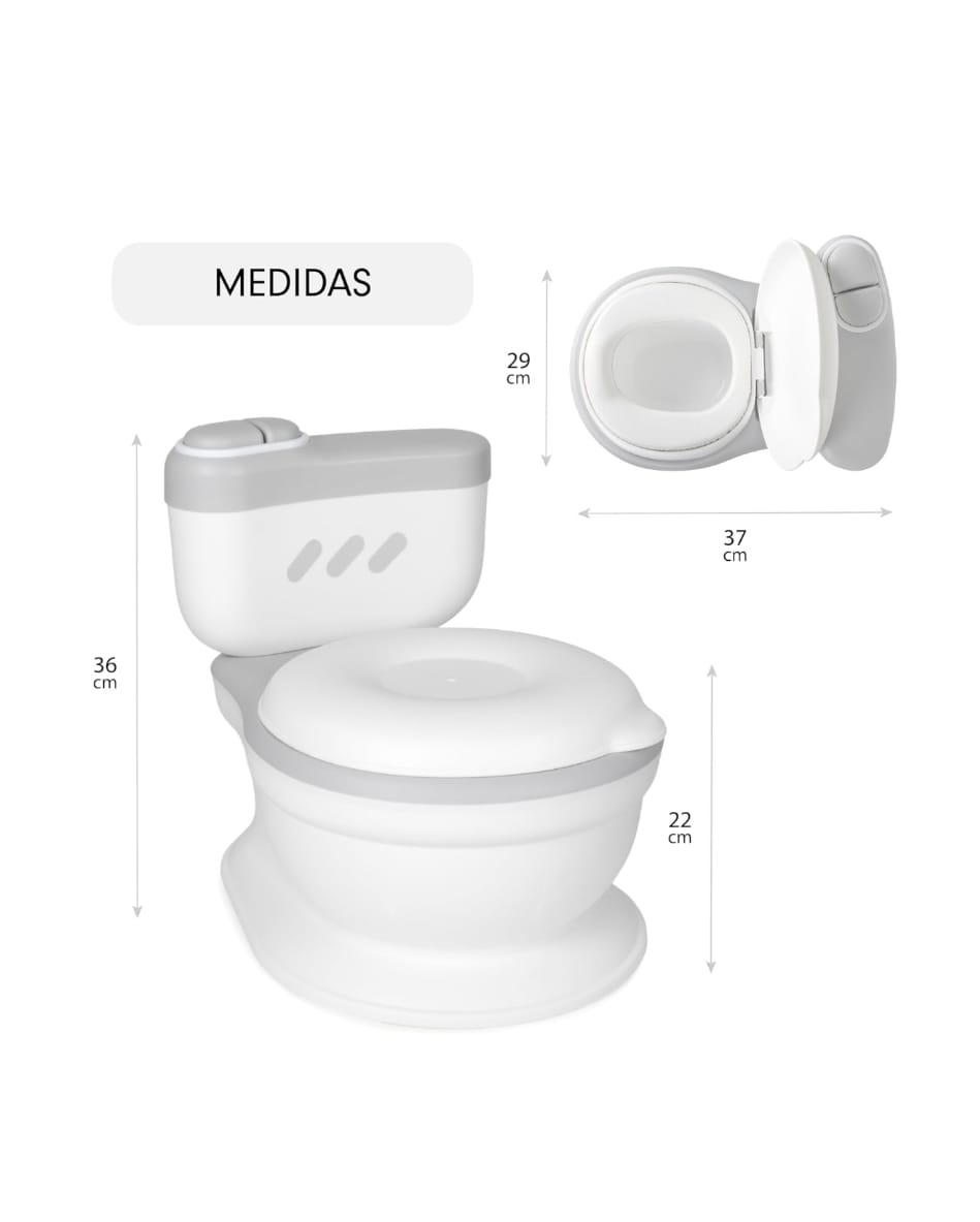 Este orinal infantil imita un WC adulto, con música para diversión. Los niños lo disfrutarán pulsando el botón con sonido. Fácil de usar, está diseñado para la altura de los niños, con base antideslizante y asas para transporte.