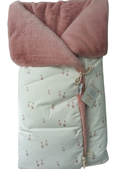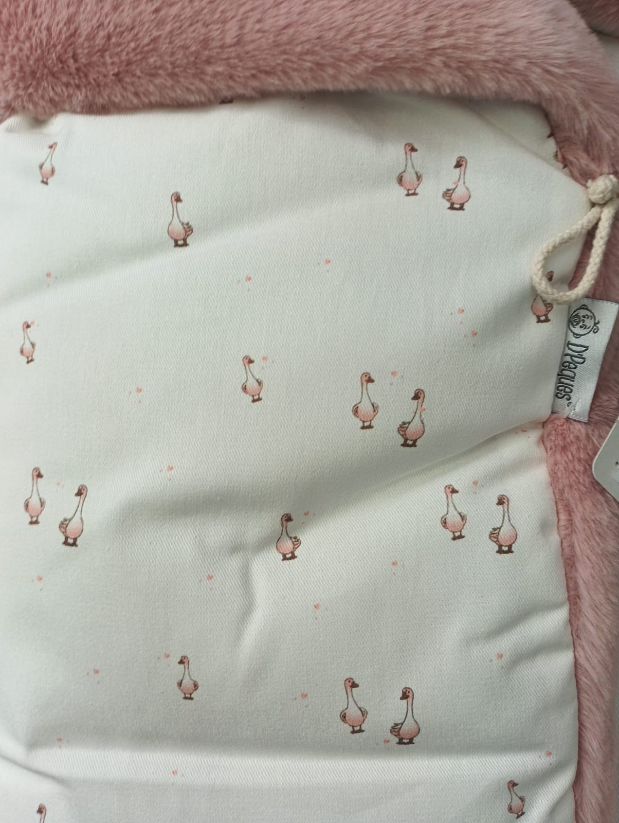 El tejido interior de suave pelo proporciona una sensación térmica agradable y acogedora, ideal para los meses más fríos. Por fuera, el tejido exterior de algodón 100% garantiza transpirabilidad y resistencia. Además, su bonito diseño de estampado de ocas en tonos rosa aporta un estilo dulce y moderno que enamora a primera vista.