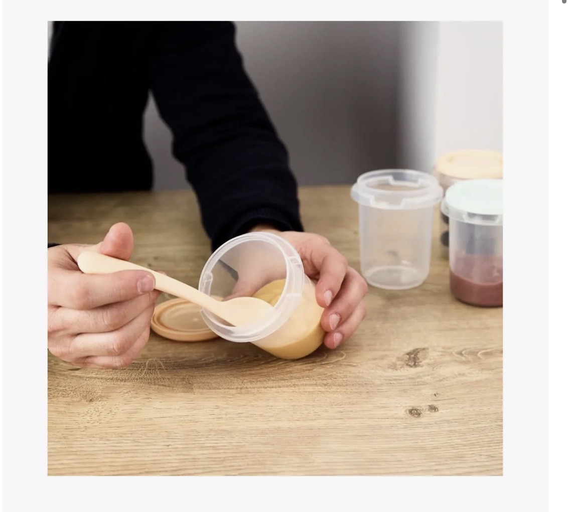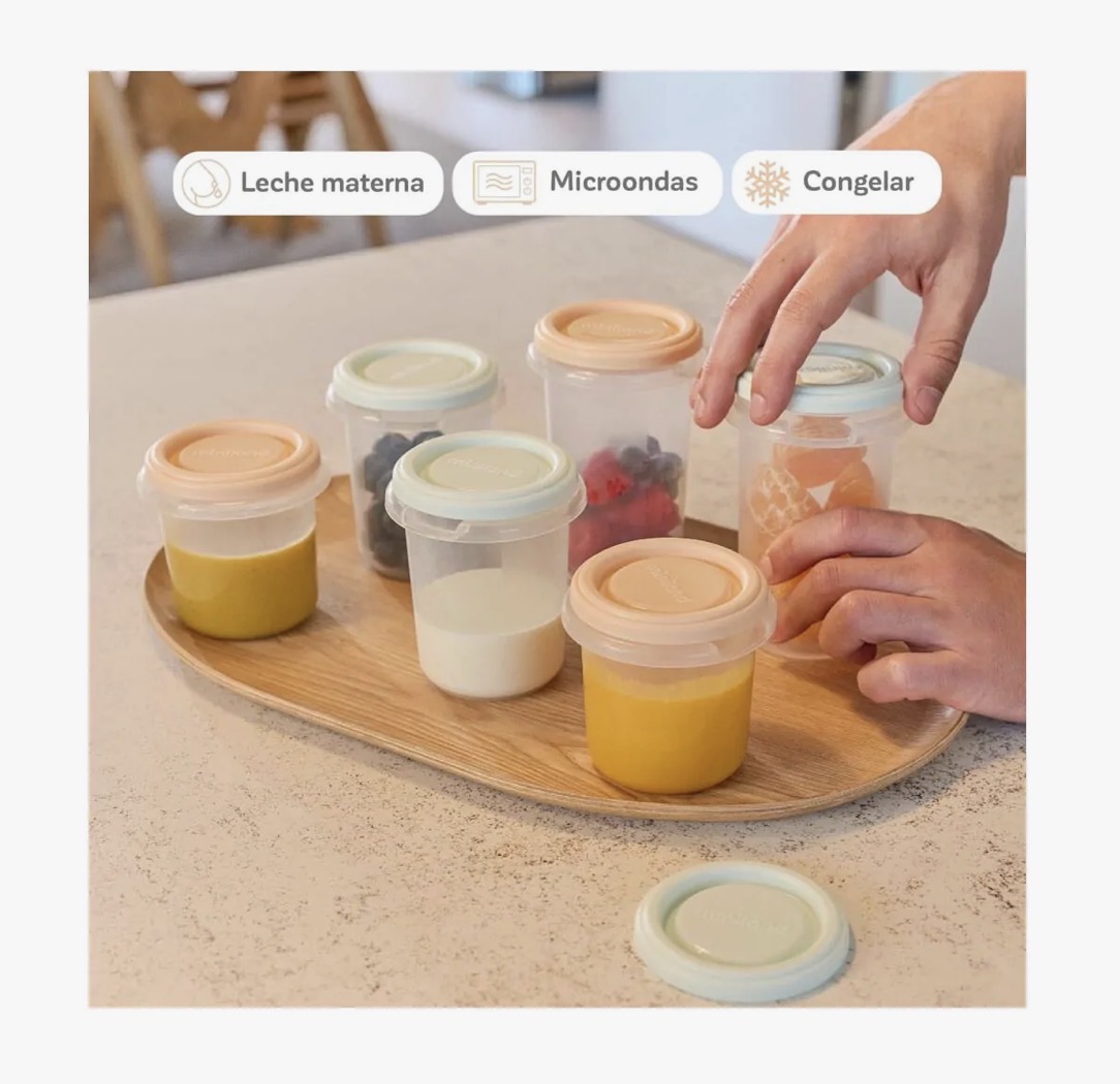 Cada recipiente incorpora marcas de medida, que permiten controlar con exactitud la cantidad de alimento o leche materna almacenada. Esta característica facilita una planificación más precisa de las tomas diarias del bebé.