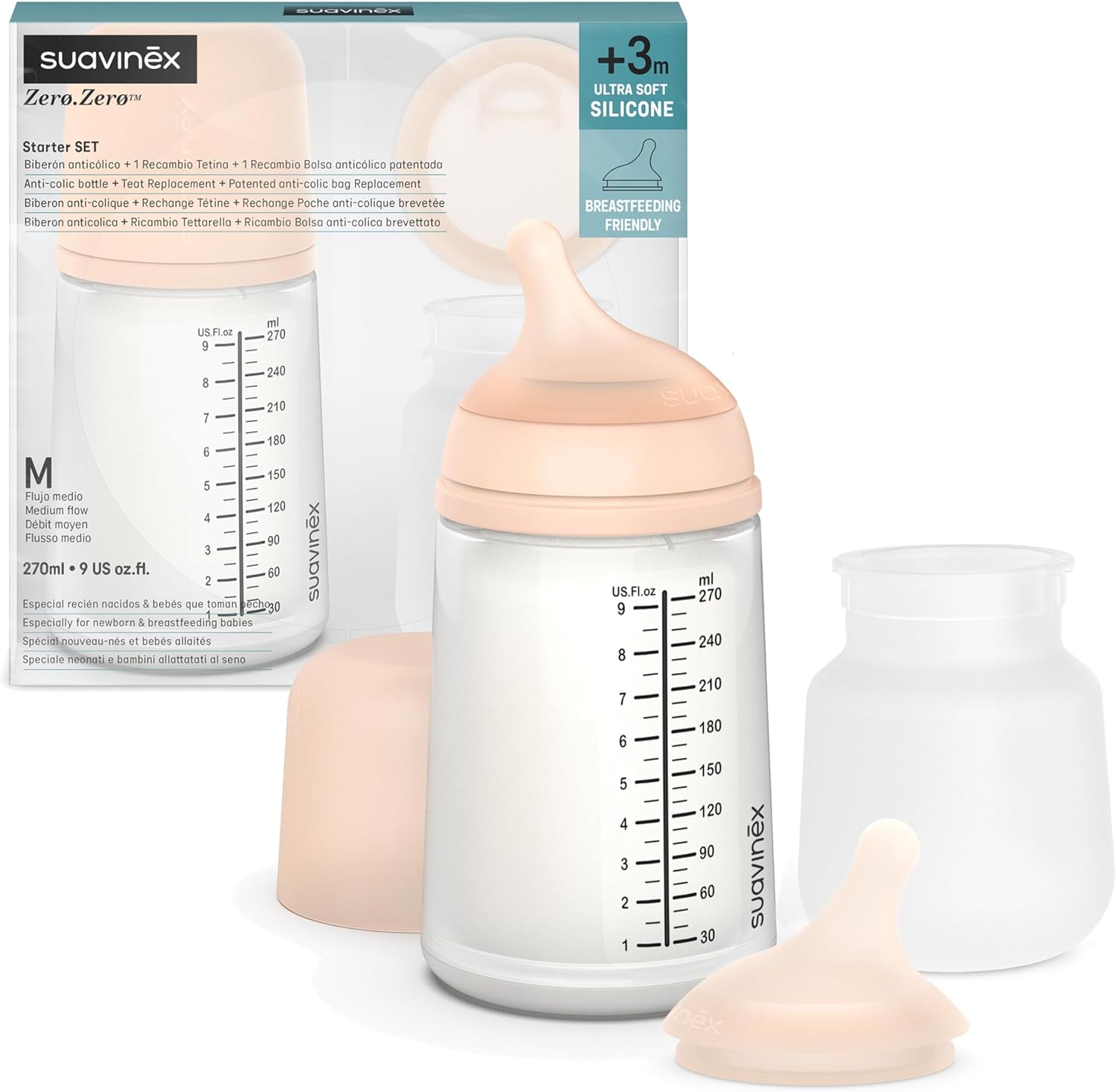 - PACK BIBERÓN ZERO ZERO CON RECAMBIOS. Incluye: 1 Biberón Anticólico Zero Zero completo, con Tetina de Flujo Medio, de 270 ml + 1 Bolsa Interior de Silicona de Recambio + 1 Tetina de Flujo Medio de Recambio