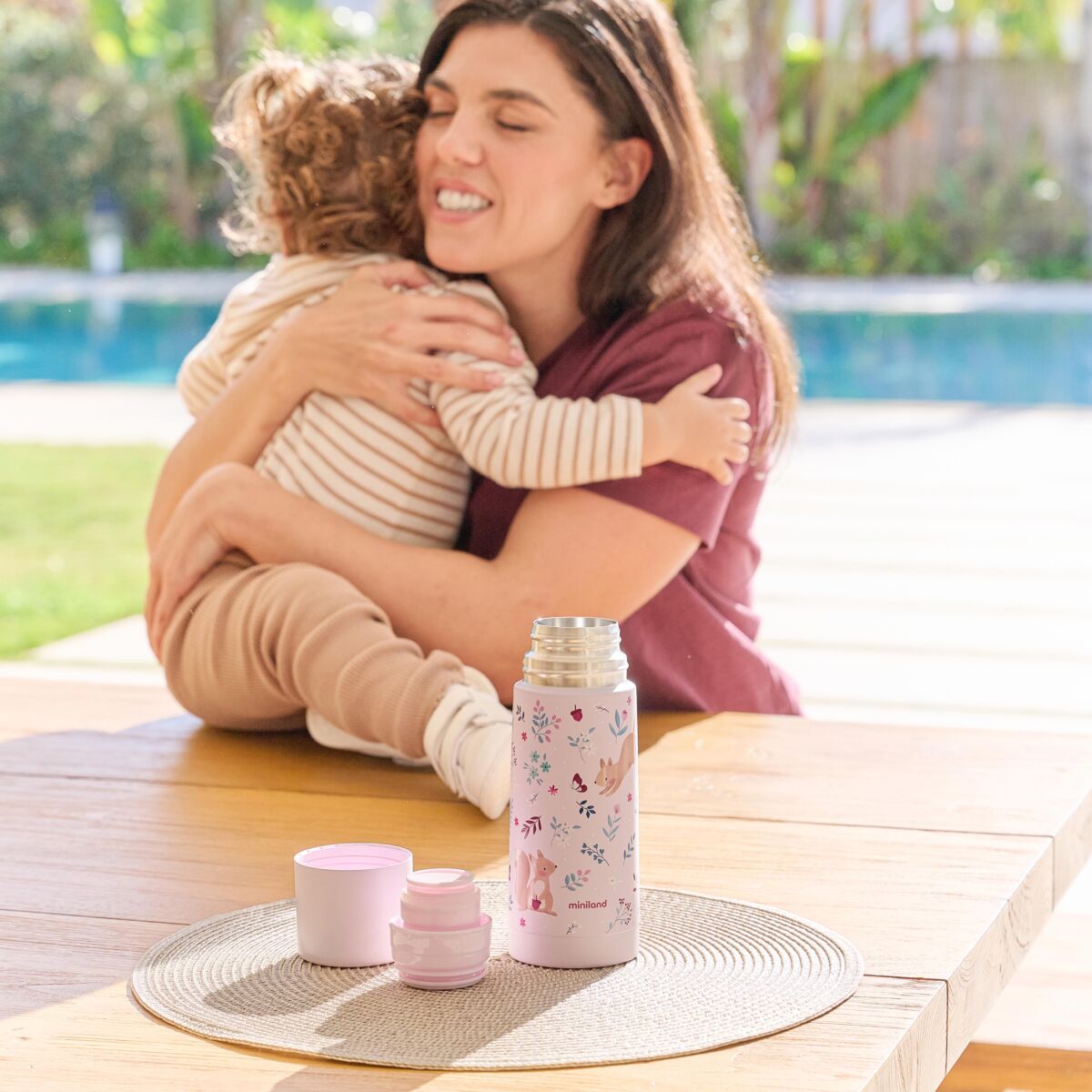 Es el termo ideal para llevar las tomas de tu bebé siempre listas, incluso en los planes más cortos. Mantiene los líquidos a la temperatura adecuada más de 24 horas y te permite servirlos sin derrames. Compacto, seguro y práctico, pensado para acompañaros en cada salida.