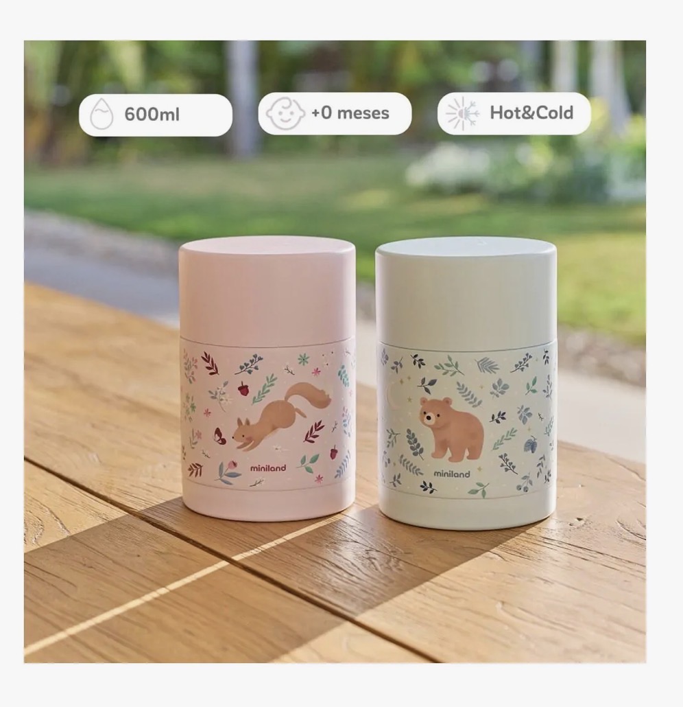 Food Thermy 600 ml de Miniland es un termo diseñado para conservar alimentos sólidos y papillas destinados a la alimentación del bebé y del niño pequeño. Gracias a su capacidad de 600 ml, es una opción práctica para comidas más completas o para llevar varias raciones en un solo recipiente.
